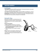 GETTING STARTED (continued) Making/Taking Calls The headset must be on and connected with your phone. Making a Call 1. Dial the desired number on your phone. You will hear the call in the headset. 2. To end the call, press the MFB once. The call will end and the headset will enter standby mode. Answering a Call By Voice: 1. When you receive a call, you will hear ringtones in the headset, or the caller ID. Say “answer” to answer the call. 2. To end the call, press the MFB once.