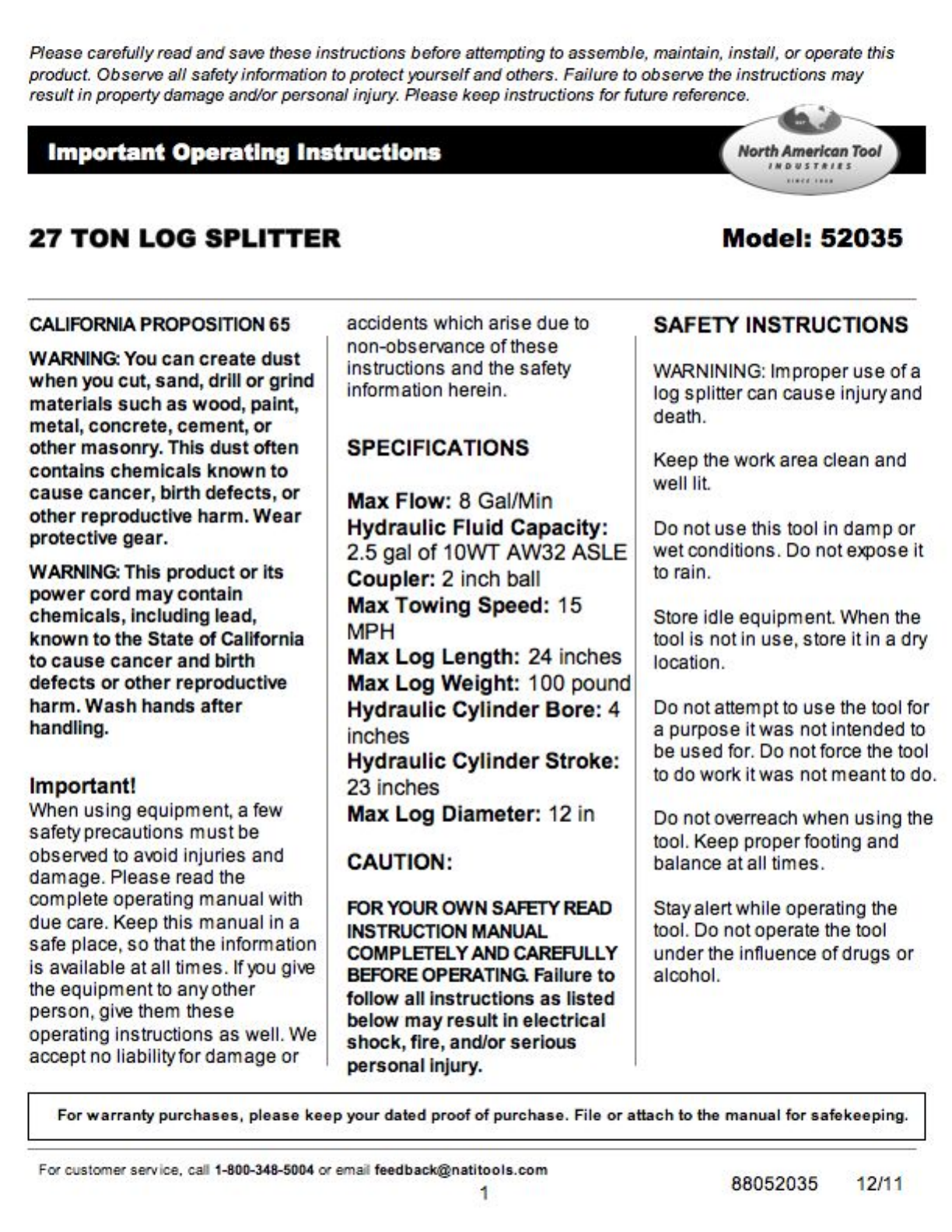 Pro-Duty 169 cc 27-Ton Gas Log Splitter
