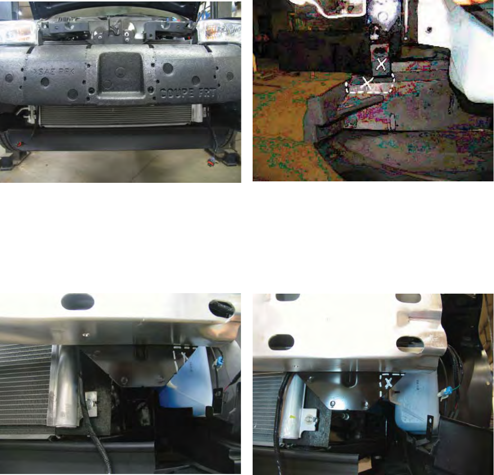 bumper bracket webbing and approximately 2” in to the frame edge on the back side of the webbing. Using