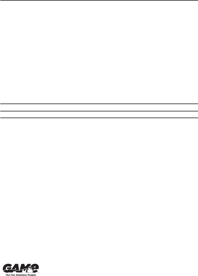 la période de garantie, GAME s’engage à réparer les pièces défectueuses ou à les remplacer par des pièces neuves, ou bien, à la discrétion de GAME, à