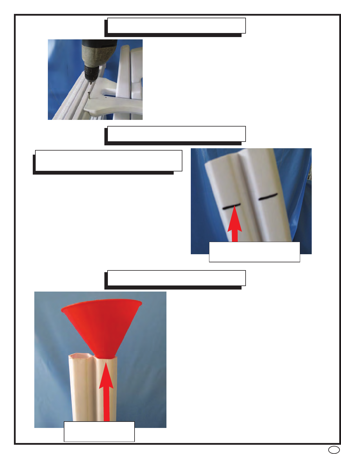 • Using a funnel fill both legs with sand. Use