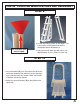 FOR 54” POOLS NO MODIFICATIONS ARE NECESSARY STEP 9 • Locate the interior portion of the ladder. This is the portion of the ladder that has the entrapment barrier attached to it. FILL LEGS WITH SAND USING A FUNNEL • Using a funnel fill both legs with sand. Use approximately 20 Lbs. of sand in each leg. STEP 10 • Lay one handrail (G) on a flat surface and push the connected dowels of the platform into the openings on the handrail until fully seated. Make sure treads of platform are facing upward.