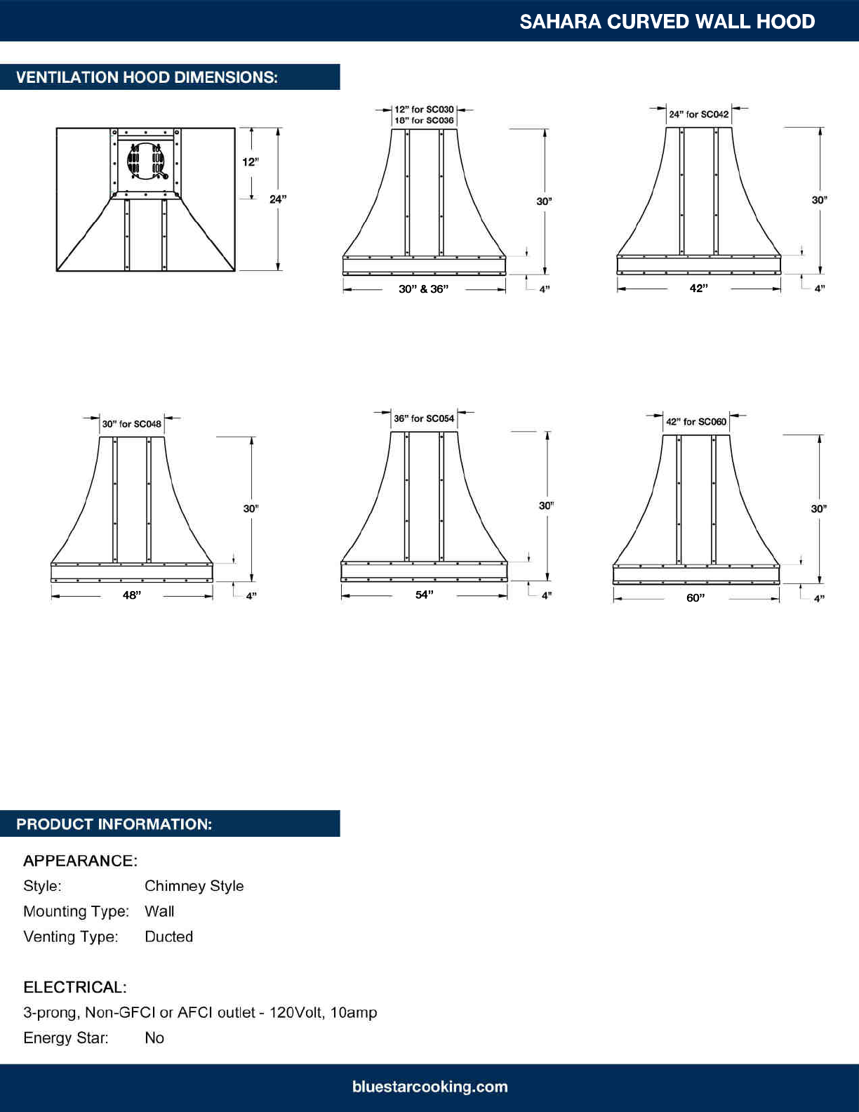 BlueStar 48" Stainless Steel Sahara Curved Sides Wall Hood