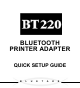 BLUETOOTH PRINTER ADAPTER – QUICK SETUP GUIDE Wireless Notice In some environments, the use of wireless devices may be restricted. Such restrictions may apply aboard airplanes, in hospitals, near explosives, in hazardous locations, etc. If you are uncertain of the policy that applies to the use of this device, please ask for authorization to use it prior to turning it on. Safety and General Information Please read the following information before using this product (BT220 Bluetooth Printer Adapter).