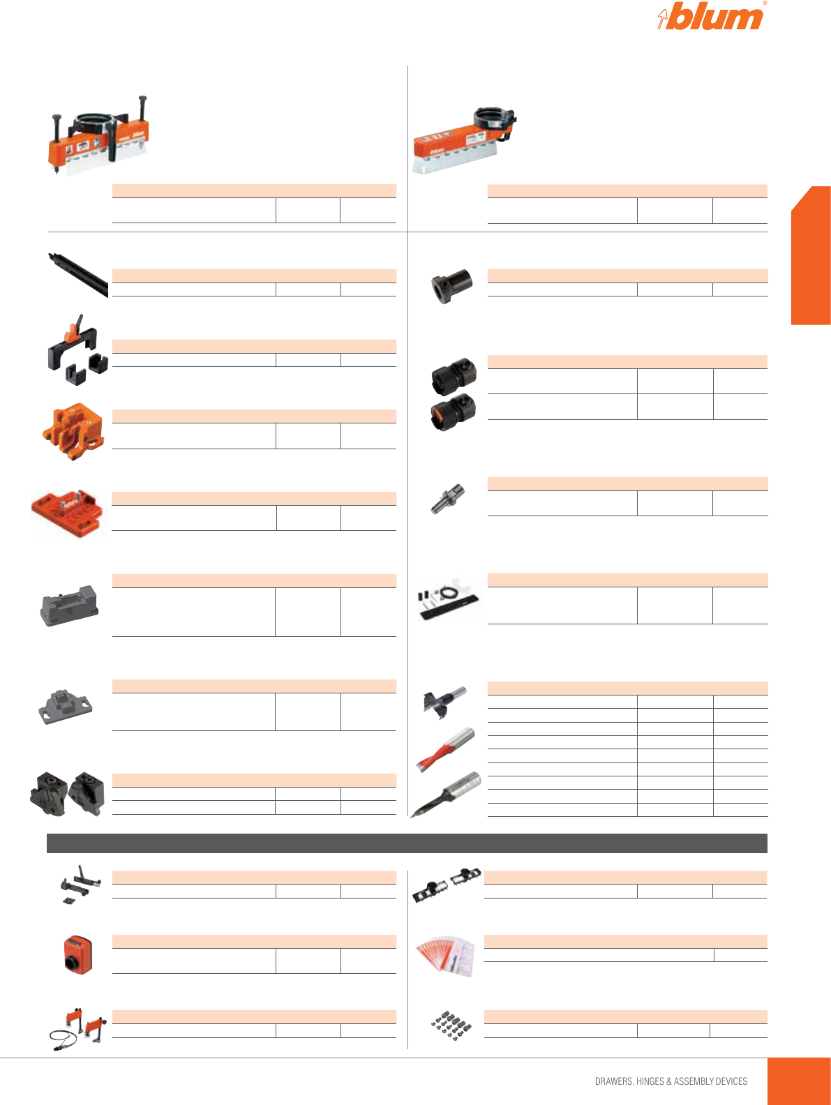 DRAWERS, HINGES & ASSEMBLY DEVICES