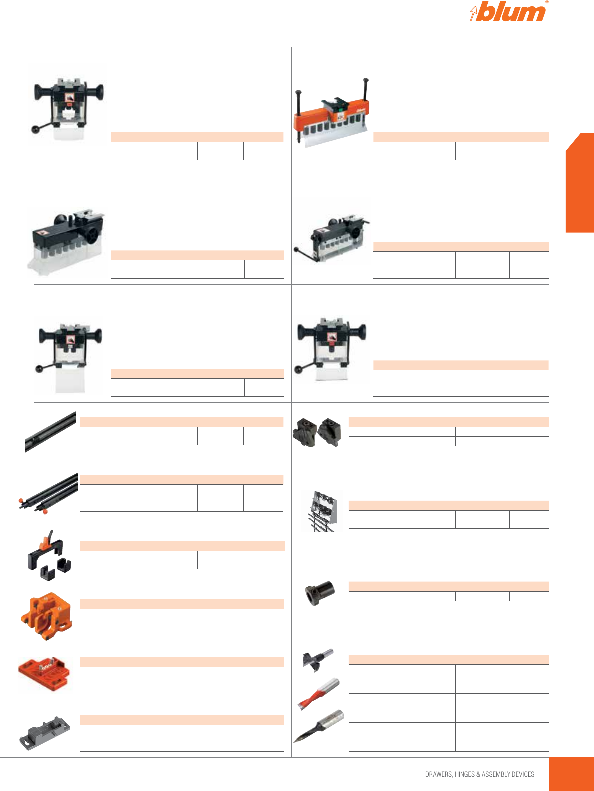 DRAWERS, HINGES & ASSEMBLY DEVICES
