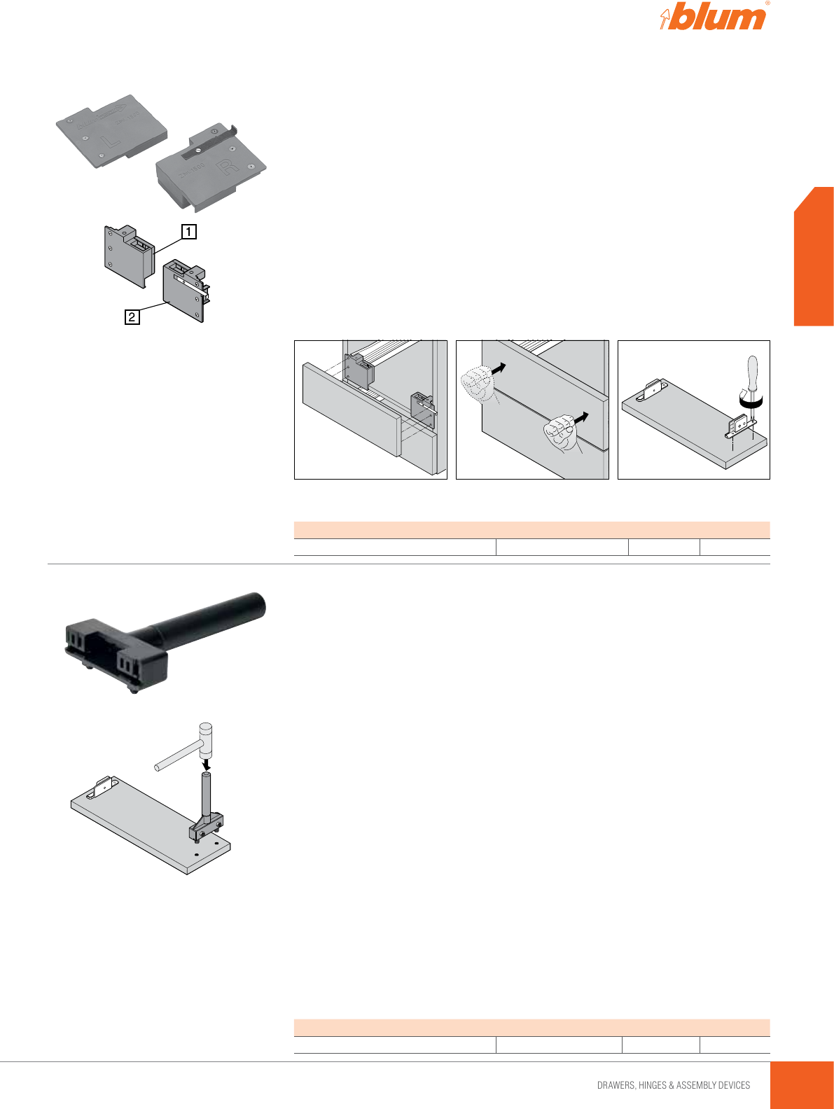 DRAWERS, HINGES & ASSEMBLY DEVICES