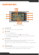 DESCRIPTION OF PARTS 2 1 3 4 14 5 13 6 12 7 11 10 9 8 Figure 1: JControl Monitoring Panel 1 AC CONNECTED Appears when the J35 is connected to AC mains. 2 BATTERY OFF Battery off will appear when: 1. The user presses the battery button 4 to enter Sleep Mode. 2. The J35 has automatically entered Sleep Mode to preserve battery capacity until the battery can be charged.