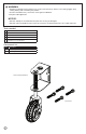 1 2 Marquer l’emplacement: a. Placer la roue de barrière à l’emplacement désiré. b. Marquer l’emplacement des vis (Fig. 1). Installation: a. Au moyen d’une mèche de 7/32 po (5,5 mm), percer des avant-trous aux quatre emplacements de vis marqués (Fig. 2). b. Fixer le support de roue à la barrière à l’aide des vis fournies (Fig. 3). Fig. 1 Fig. 2 Fig.