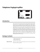Additional Power Amplifier An external power amplifier can be used with the TPU250 amplifier. You must first add a resistor voltage divider to the telephone amplifier, as illustrated in Figure 8. Connect a patch cord to the high-level/high-impedance input of the booster amplifier. TO 25V OUTPUT TERMINAL Figure 8 : Output Circuitry 39K 1/2 W TO HI-Z INPUT OF BOOSTER AMPLIFIER 10K 1/2W TO COM ON TERMINAL STRIP RCA Jack ABLE ... .. EPT CC G A ... .. IRIN 2W SS ... .. CLA . .... T-..