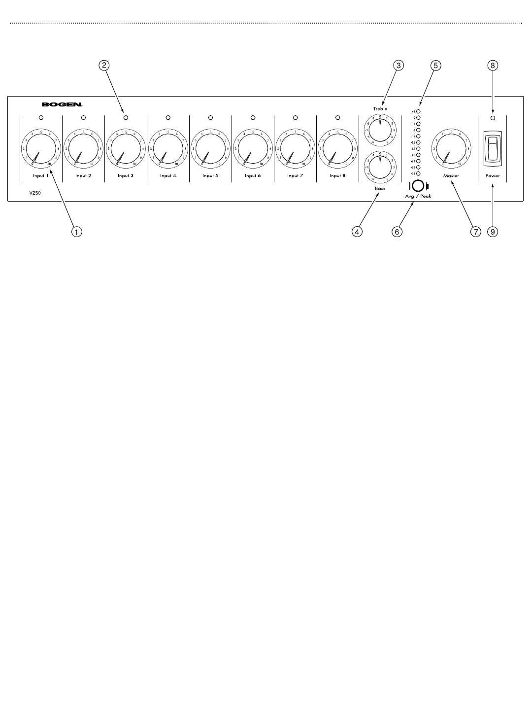 Each of the 8 inputs is controlled by an independent volume control.
