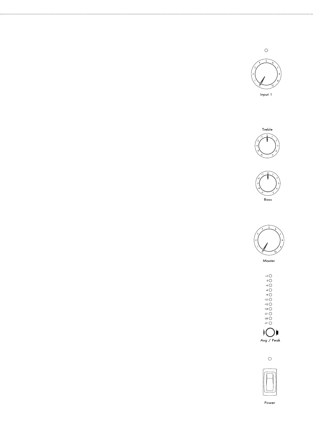 The overall volume level of the amplifier is set by a Master Volume