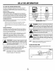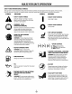 RULES SAFETY AND INTERNATIONAL FOR SAFEOPERATION SYMBOLS This operator's manual describes safety and international symbols and pictographs that may appear on this product. Readthe operator's manual for complete safety, assembly, operating and maintenance and repair information. SYMBOL MEANING SYMBOL MEANING • ONIOFF STOP CONTROL Indicates danger, warning or caution. • SAFETY ALERT SYMBOL with other May be used in conjunction symbols or pictographs.