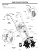 RULES FOR SAFEOPERATION KNOW YOUR UNIT STOP/OFF (0) Application: \ • Cultivating sod and light to medium soil • Cultivating in garden areas, around trees, etc. Handgrip Handlebar Handgrip On/Off Stop Control Throttle Control START/ON (I) Handlebar Knob / Throttle Cable and Switch Wires FuelCap Starter Rope Grip Primer Bulb Handlebar Knob Choke Control Shaft Tube Grip Tine Guard Air Filter/ __ Gearbox \ Muffler Spark Plug Wheel Bracket Assembly / / _Tines / 6