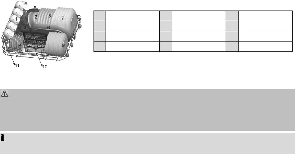 • Knives and other utensils with sharp points must be placed with the tip down in the cutlery basket or in a hori-