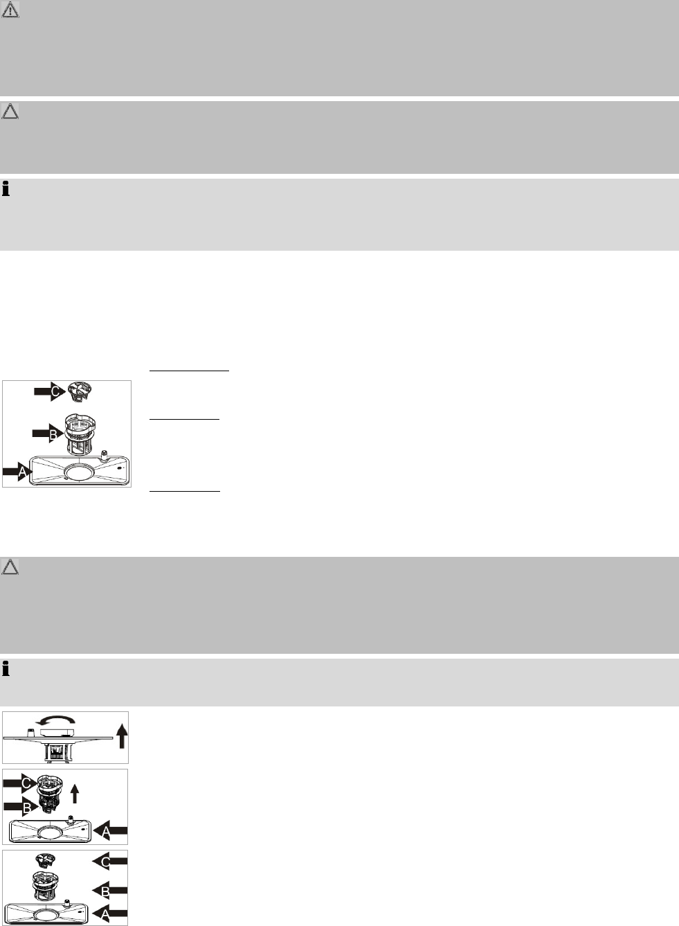 • Der Geschirrspüler darf niemals ohne Filter betrieben werden.