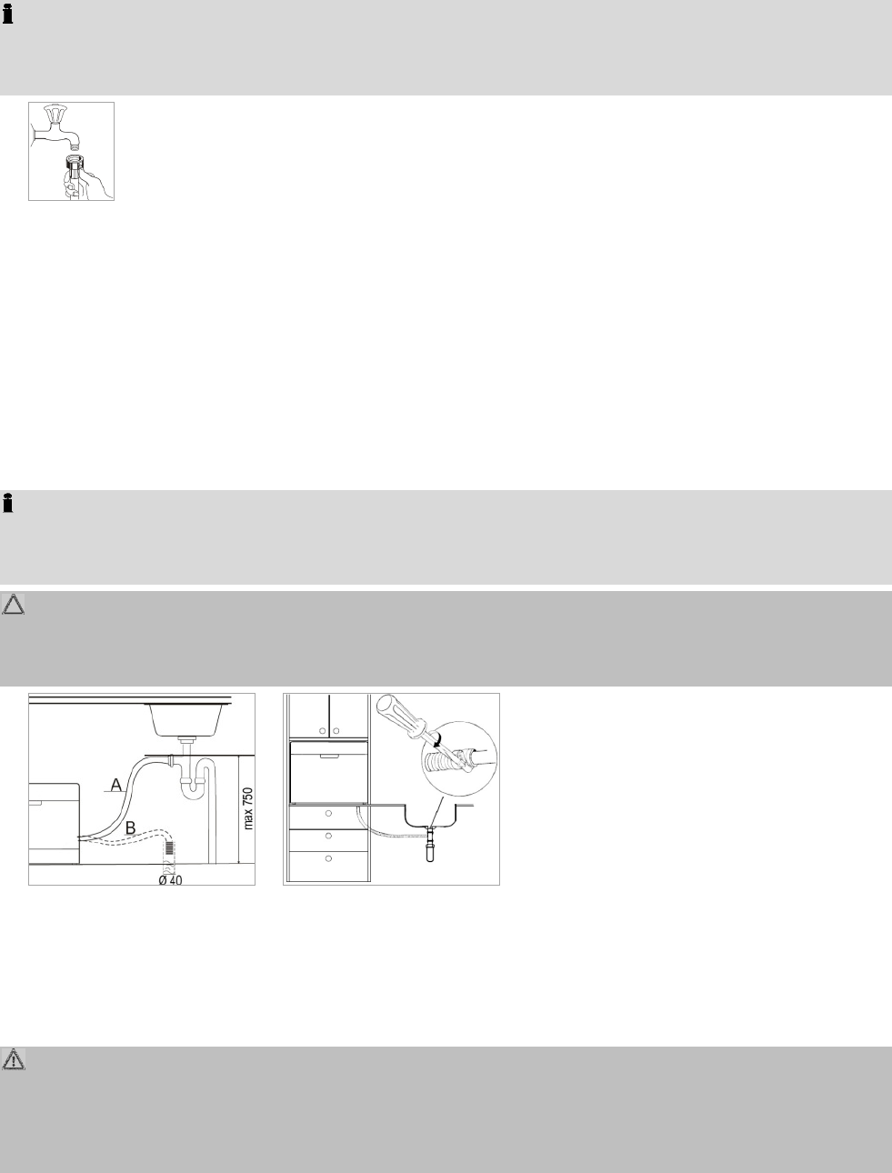 • Der Schlauch darf maximal in einer Höhe von 750 mm zum Geräteboden verlegt werden.