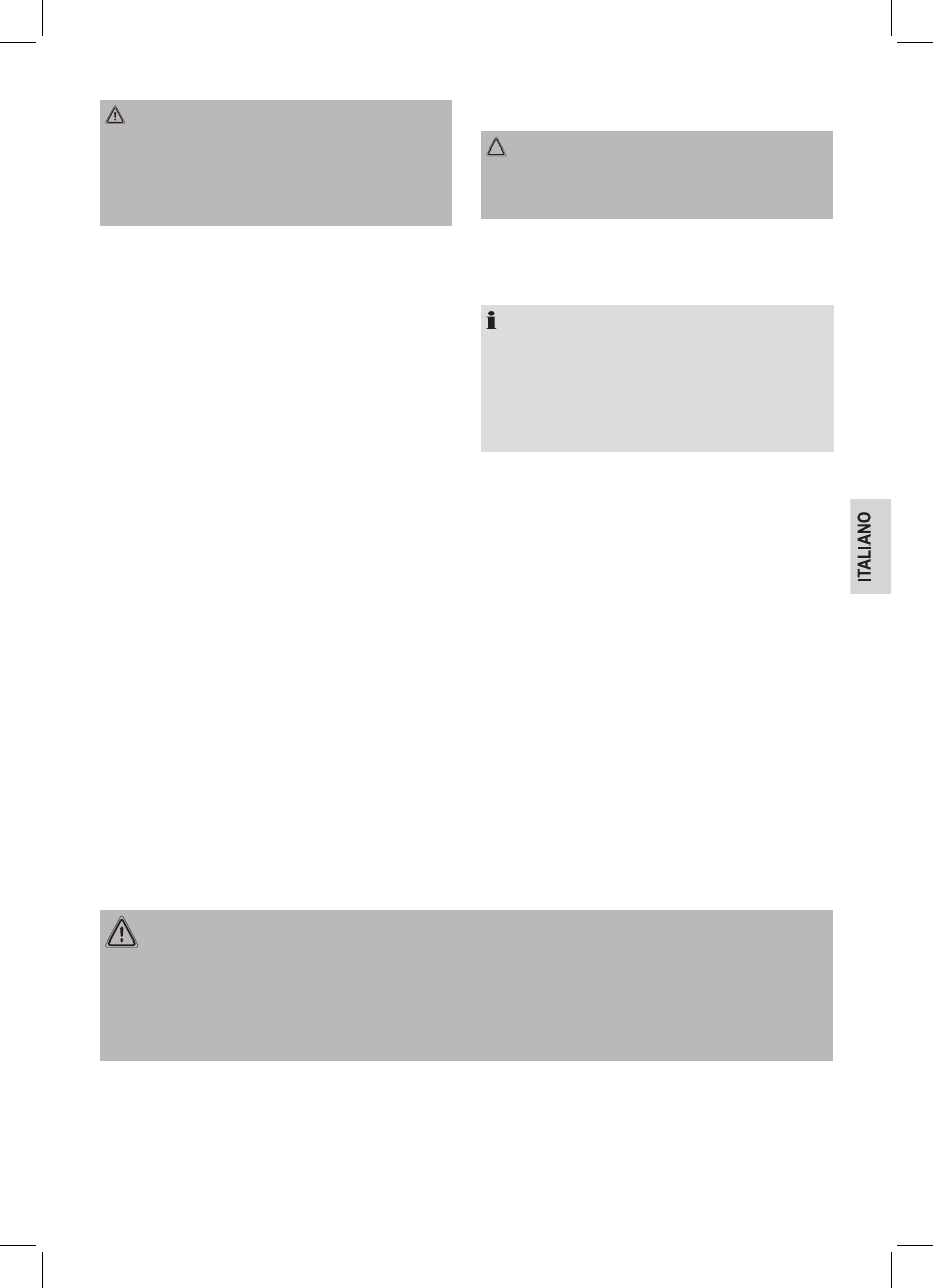 • In nessun caso immergere l‘apparecchio in acqua per la pulizia. Ne