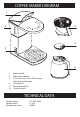 DIAGRAMME CAFETIÈRE 1 4 2 5 3 6 1. 2. 3. 4. 5. 6. couvercle du réservoir d'eau indicateur de niveau d’eau Interrupteur marche / arrêt, 15 minutes arrêt automatiques après le début du cycle d’infusion panier à filtre couvercle de la thermos carafe thermos DONNEES TECHNIQUES Tension nominale: RCourant nominal: Puissance absorbée nominale: AC 120V, 60Hz 11.