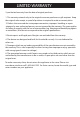 GARANTIE LIMITÉE 2 ans de garantie limitée après la date d'achat initiale. 1. Cette garantie s'applique uniquement à l'acheteur d’origine ou au détenteur du cadeaul. Garder le reçu de caisse original, car une preuve d'achat est requise pour faire une réclamation sur la garantie. 2. Tous défauts dus à une mauvaise connexion, une mauvaise manipulation, ou des tentatives de réparation par des personnes non autorisées ne sont pas couverts par la garantie.