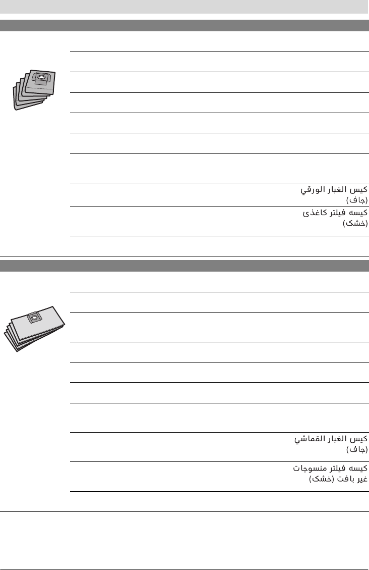 de Vliesfilterbeutel (trocken) fi Kuitusuodatinpussi (kuiva) bg Филтърна торба от кече