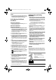 OBJ_BUCH-1227-004.book Page 82 Monday, November 14, 2011 3:33 PM 82 | Ðóññêèé f Íå ðàçðåøàåòñÿ èñïîëüçîâàòü øíóð íå ïî íàçíà÷åíèþ, íàïðèìåð, äëÿ òðàíñïîðòèðîâêè èëè ïîäâåñêè ýëåêòðîèíñòðóìåíòà, èëè äëÿ âûòÿãèâàíèÿ âèëêè èç øòåïñåëüíîé ðîçåòêè. Çàùèùàéòå øíóð îò âîçäåéñòâèÿ âûñîêèõ òåìïåðàòóð, ìàñëà, îñòðûõ êðîìîê èëè ïîäâèæíûõ ÷àñòåé ýëåêòðîèíñòðóìåíòà. Ïîâðåæäåííûé èëè ñïóòàííûé øíóð ïîâûøàåò ðèñê ïîðàæåíèÿ ýëåêòðîòîêîì.