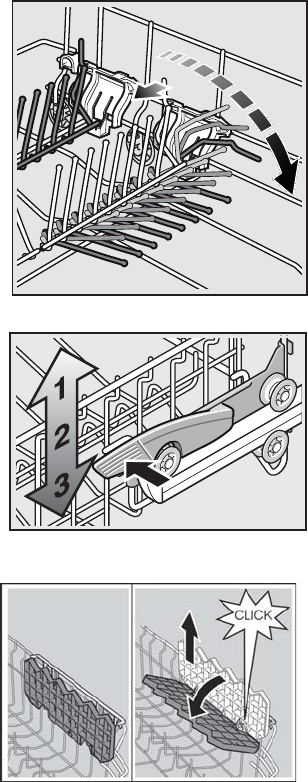 Ensure items do not protrude through the bottom of the racks and block the spray arms.