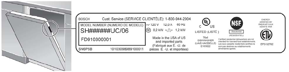 You will find the model and serial number information on the label located on the edge of the dishwasher door.