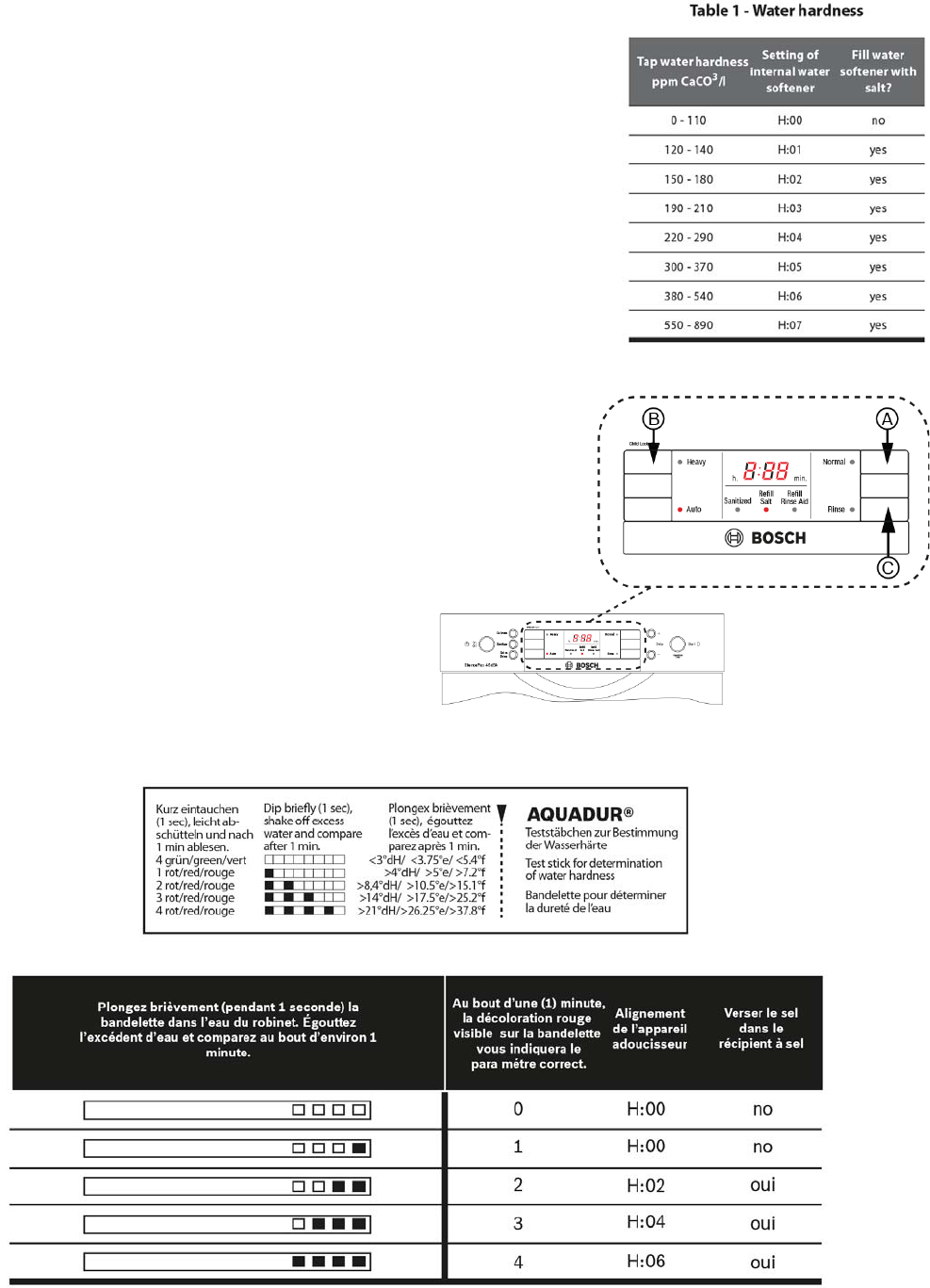 de lavage et est équipé d’un adoucisseur d’eau interne. Toutefois, si