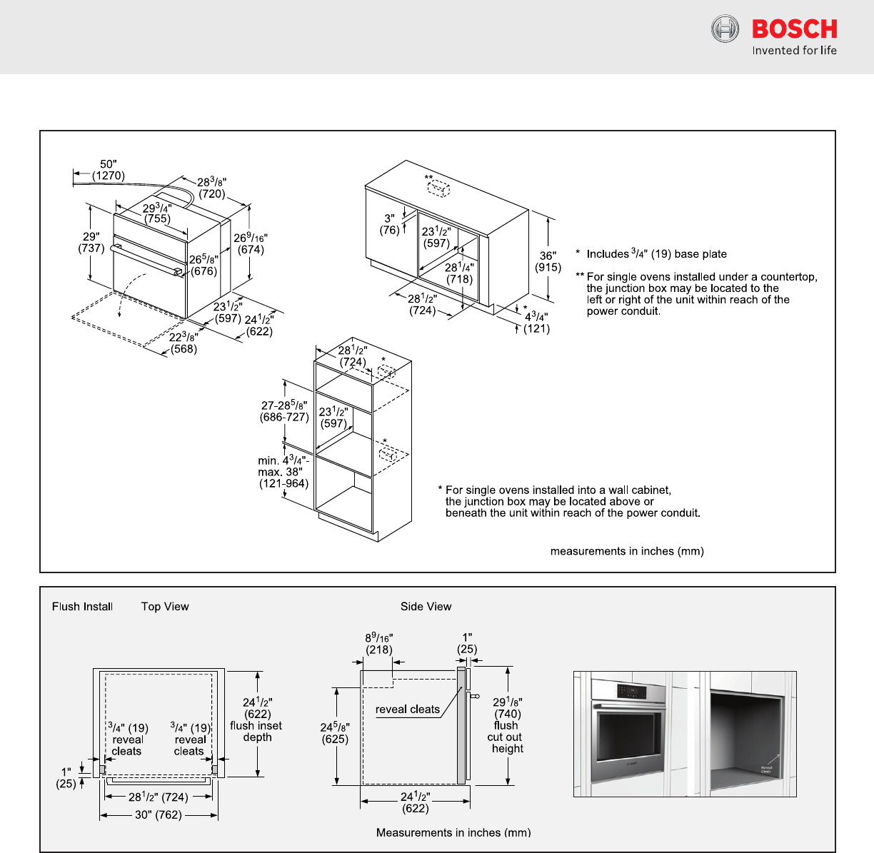 Notes: All height, width and depth dimensions are shown in inches. Please refer to installation instructions prior to making cutout. BSH reserves the absolute and unrestricted right