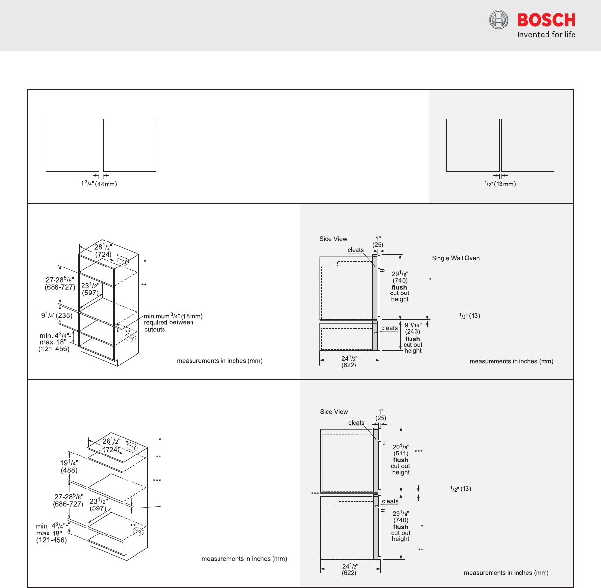 IMPORTANT: The spacing between cutouts applies when installing any Bosch 30" or