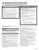 Safety IMPORTANT SAFETY INSTRUCTIONS READ AND SAVE THESE INSTRUCTIONS INSTALLER: Save these instructions for the local electrical inspector’s use. Please leave these instructions with this unit for the owner. Show the owner the location of the circuit breaker or fuse. Mark it for easy reference. OWNER: Please retain these instructions for future reference. WARNING If the information in this manual is not followed exactly, fire or shock may result causing property damage or personal injury.