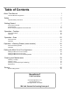Table of Contents About This Manual . . . . . . . . . . . . . . . . . . . . . . . . . . . . . . . . . . . . . . . . . . . . . . . 1 How This Manual Is Organized . . . . . . . . . . . . . . . . . . . . . . . . . . . . . . . . . . . . . . . . . . . . . . . . . . . . . . . . . 1 Safety . . . . . . . . . . . . . . . . . . . . . . . . . . . . . . . . . . . . . . . . . . . . . . . . . . . . . . . . . 2 Important Safety Instructions . . . . . . . . . . . . . . . . . . . . . . . . . . . . . . . . . . . . . . . . .