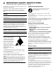 - 9 I M P O R T A N T S A F E T Y IMPORTANT SAFETY INSTRUCTIONS READ AND SAVE THESE INSTRUCTIONS I N S T R U C T I O N S R E A D A N D S A V E T H E S E I N S T R U C T I O N S GasAplianceSfty :$51,1* ,I WKH LQIRUPDWLRQ LQ WKHVH LQVWUXFWLRQV LV QRW IROORZHG H[DFWO\ D ILUH RU H[SORVLRQ PD\ UHVXOW FDXVLQJ SURSHUW\ GDPDJH SHUVRQDO LQMXU\ RU GHDWK ² 'R QRW VWRUH RU XVH JDVROLQH RU RWKHU IODPPDEOH YDSRUV DQG OLTXLGV LQ WKH YLFLQLW\ RI WKLV RU DQ\ RWKHU DSSOLDQFH ² :+$7 72 '2 ,) <28 60(// *$6