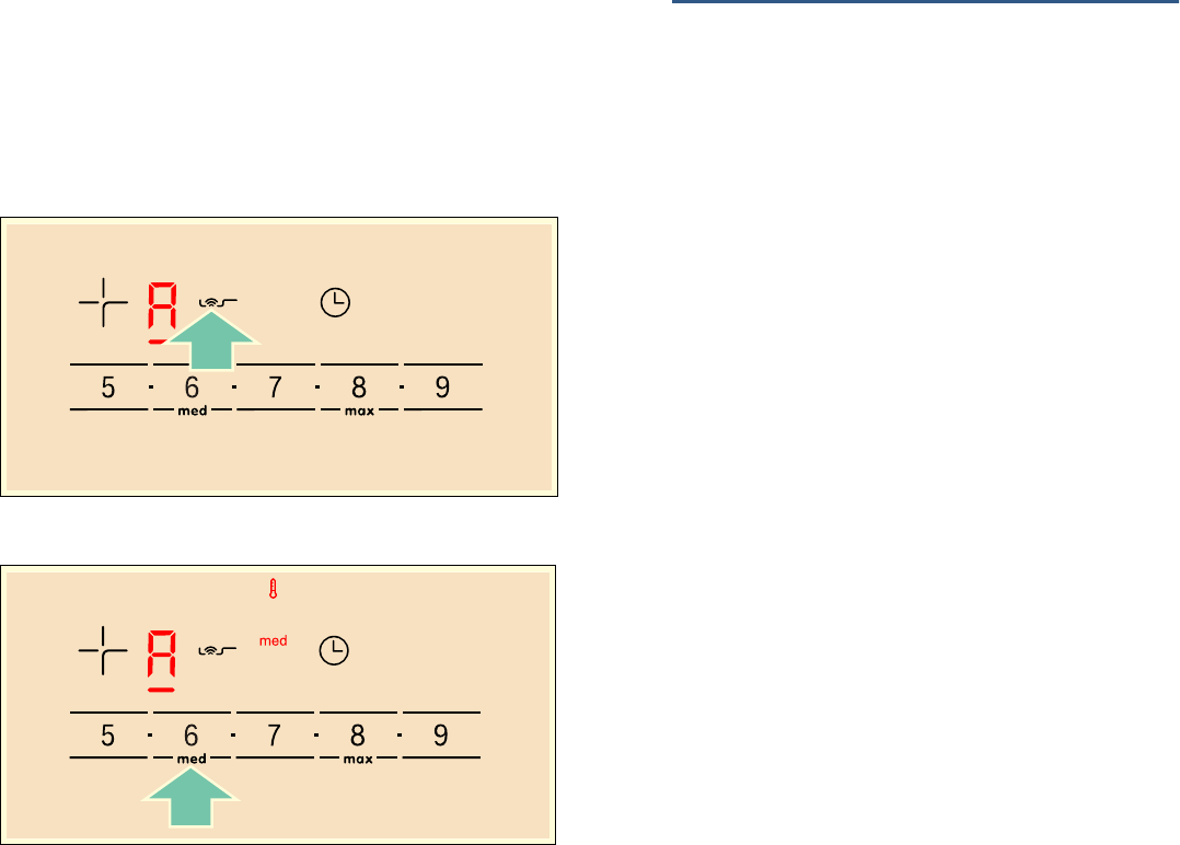 - 3. Toque na zona de regulação. Na indicação da zona de cozinhar pisca A.