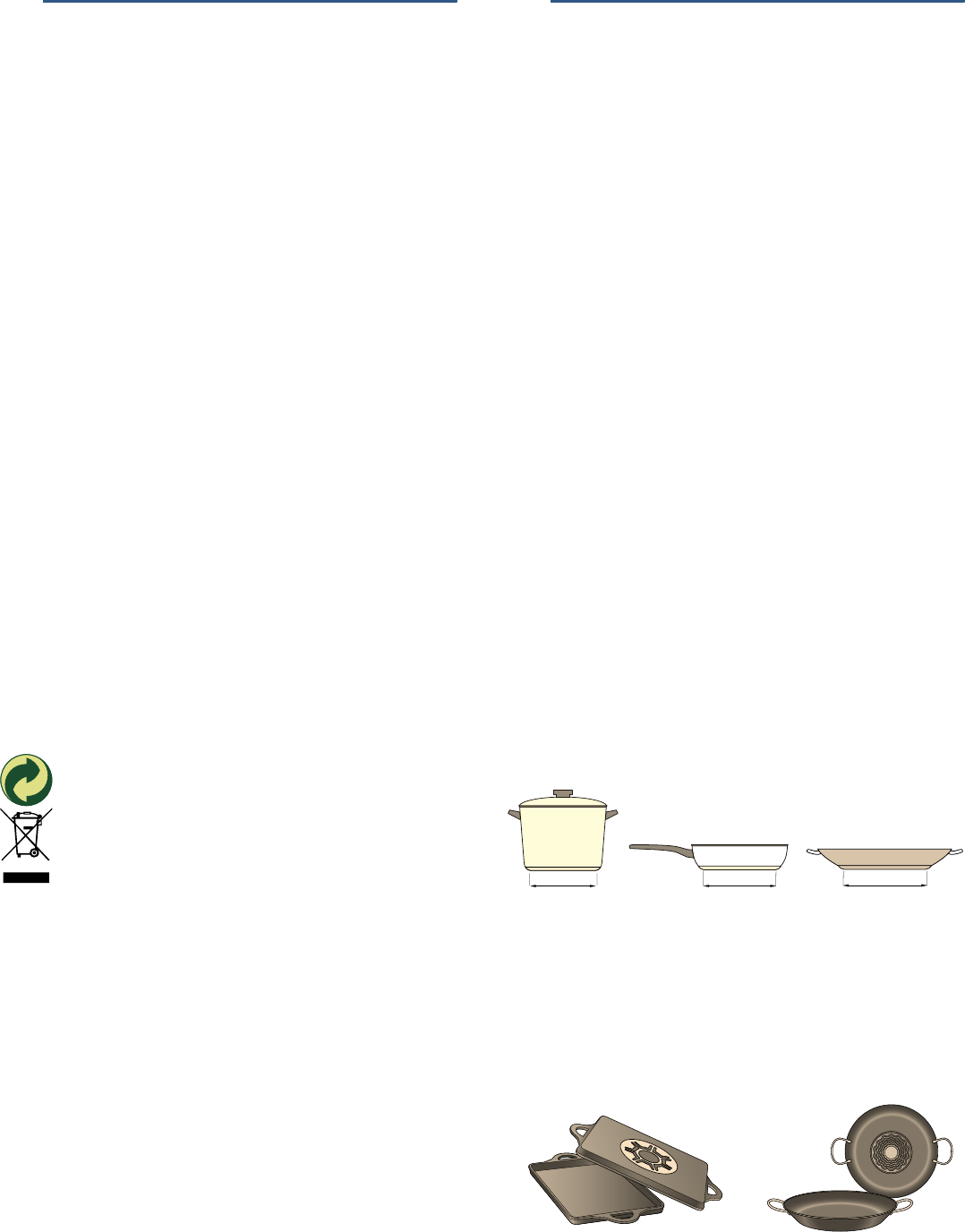 - 1. Colocar el recipiente a temperatura ambiente con 200 ml de agua aproximadamente, correctamente posicionado, en la zona de cocción que más se adecúe al diámetro del fondo del recipiente.