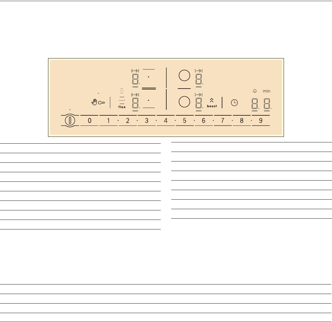 - ■ Plaats geen hete pannen op het bedieningspaneel, de indicatorzones of op de omlijsting van de kookplaat. Dit kan schade veroorzaken.