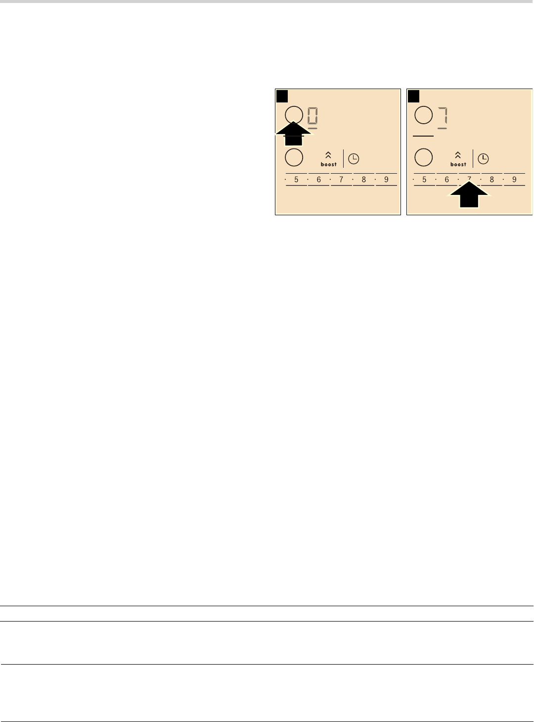 1. Appuyer sur le symbole ã ou $ de la zone de cuisson