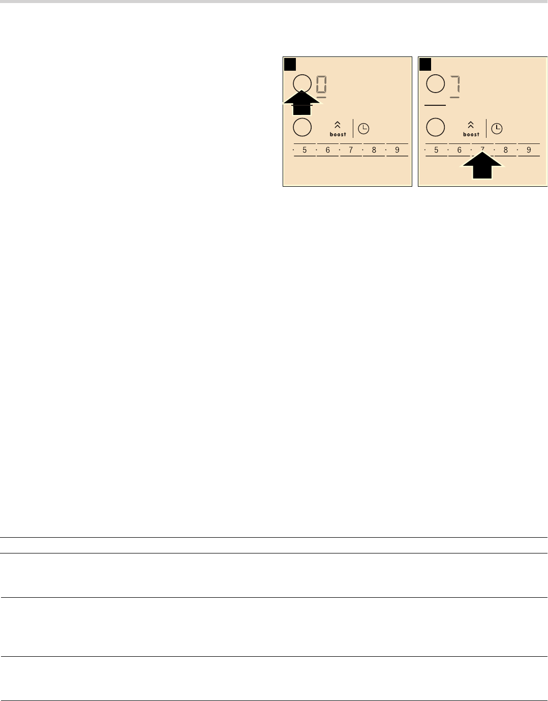 Kochstelle auswählen und im Einstellbereich die Kochstufe