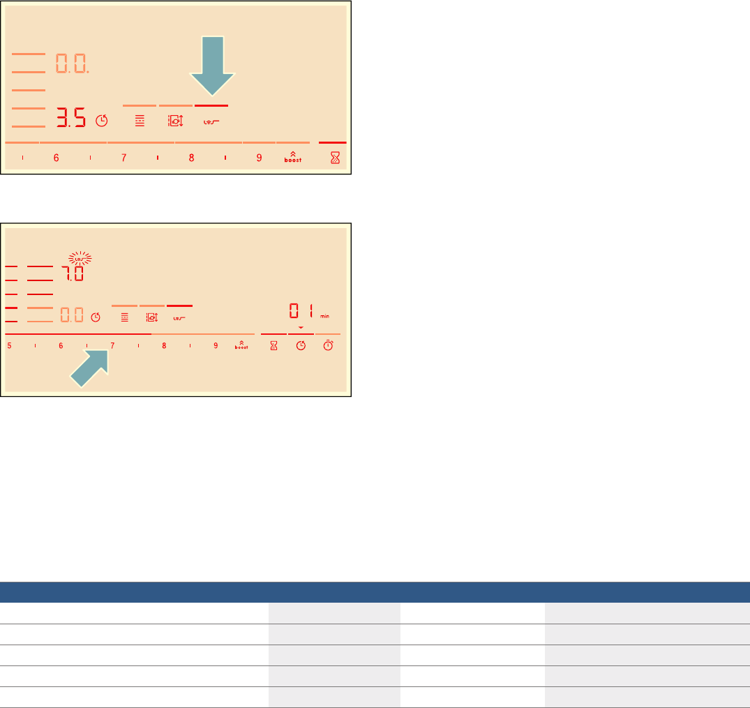 Die Kochstelle auswählen und im Einstellbereich auf ‹