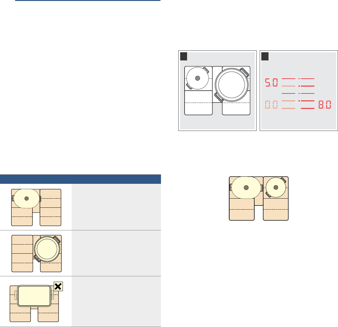 - 1. With the cookware still cold, fill it with approx. 200 ml of water and place it on the centre of the hotplate with the diameter that most closely matches that of the base of the cookware.