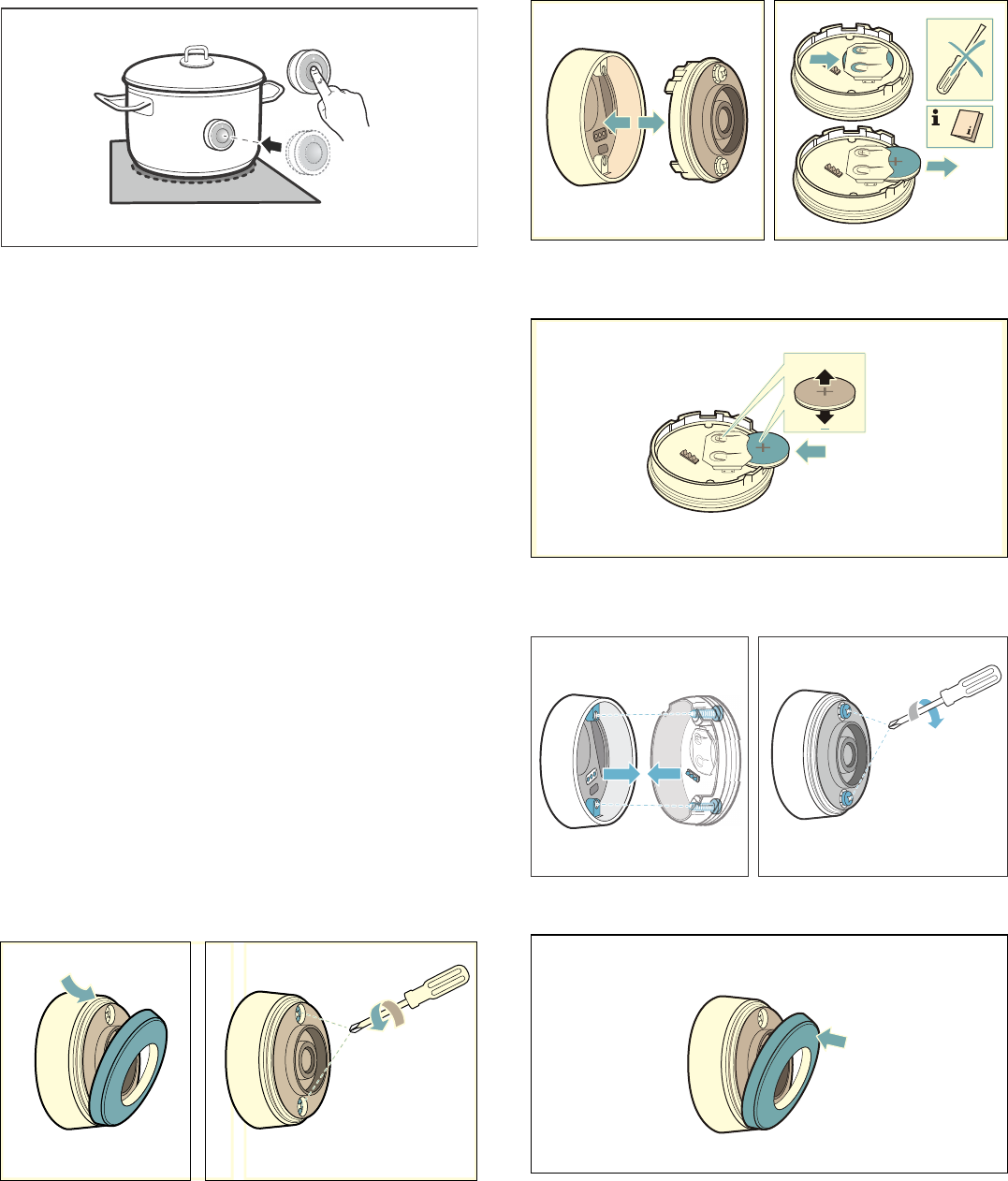 - 1. Temperatursensor am Topf befestigen, siehe Kapitel ~ "Vorbereitung und Pflege des kabellosen Temperatursensors"