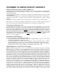 STATEMENT OF LIMITED PRODUCT WARRANTY
