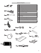 Materials Supplied A Ø 4x17 mm B C Ø 4x13 mm D A Toe panel screws B C D E F G H I J Mounting brackets K Installation Guide for fully integrated door panel (select models only) L Junction box/power supply M Wrench (wrench size 13) N Outer toe panel (3rd piece) (select models only) O Toe Panel caps and screws (select models only) P Toe Panel Mounting Brackets (select models only) Mounting bracket screws Toe panel (2 pieces) Screw clamp (for hose) Water supply adaptor fitting Flexible ed