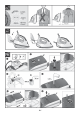 See the leaflet sides 1. Release the iron from its lock system (3) by pulling the lever located at the heel of the iron backwards. 2. Remove any label or protective covering from the soleplate (17). 3. Place the appliance horizontally on a solid, stable surface. You may remove the iron pad from the appliance and place the iron on it on another solid, stable, horizontal surface. 4. Fill the water tank, making sure not to pass the “max” level mark. 5.