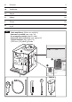 34 uk Комплект поставки (мал. A на розгортках) 1 Повністю автоматична кавова машина еспресо TES712 / TES715 2 Інструкція з експлуатації 3 Коротка інструкція 4 Спінювач молока 5 Смужка для визначення жорсткості води 6 Ложка для меленої кави ЛИШЕ TES715 7 Ємність для молока Короткий огляд (мал.