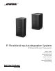 Introduction Description du produit L’enceinte Flexible Array Bose® F1 modèle 812 est la première enceinte portable amplifiée qui vous permet d’adapter sa couverture verticale. Il suffit de pousser ou de tirer sur le mécanisme de l’enceinte pour créer des profils de couverture différents : « Droit », « C », « J » ou « J inversé ». Une fois configuré, le système modifie automatiquement l’égaliseur afin de maintenir une balance tonale optimale pour chaque profil de couverture.