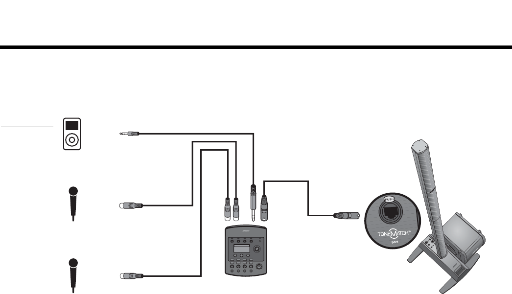 The DJ/Playback scene is designed for a DJ event or any audio playback need. This setup uses two microphones