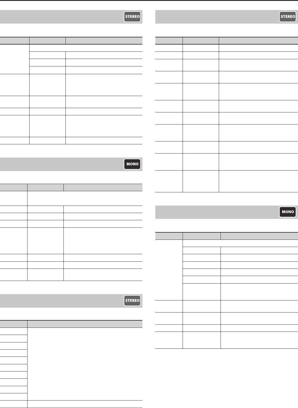 LEVEL 0–100 Adjusts the volume of the eect sound.