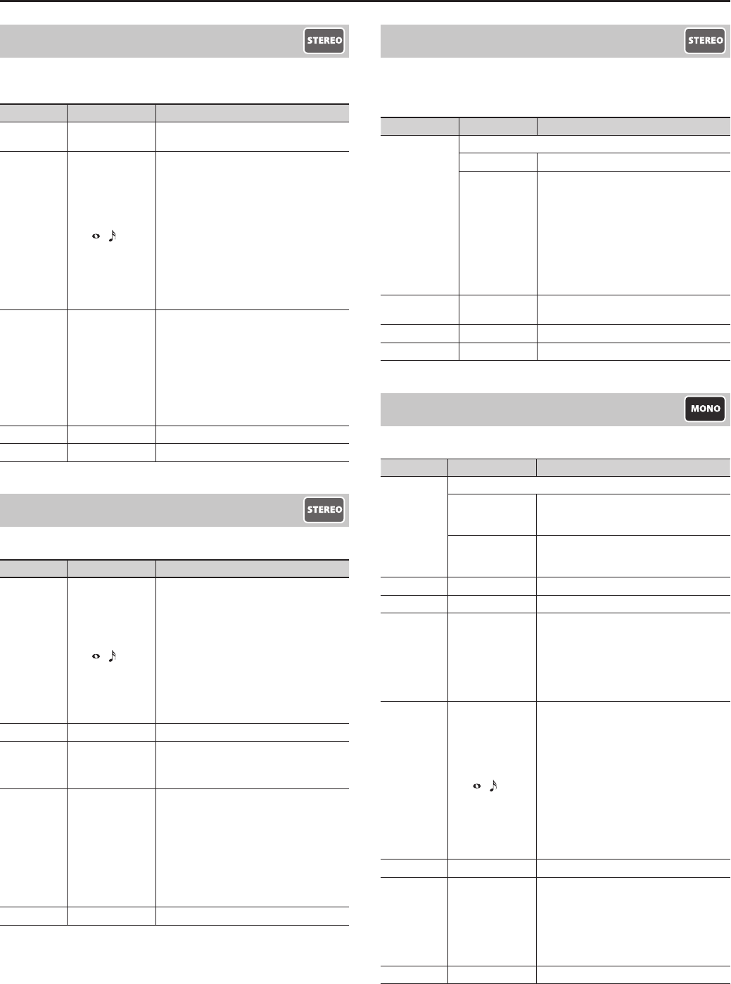 EFFECT LEVEL 0–100 Adjusts the volume of the eect sound.